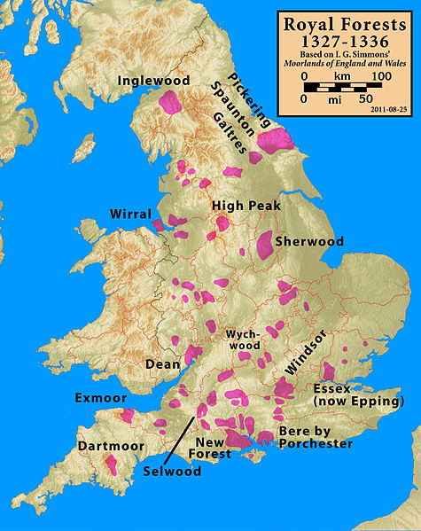I started searching old maps and finally came across a map from the 14th century that detailed the “royal forests.” There weren’t many, but I figured that was close enough, and so I used the locations of these forests to map my setting.