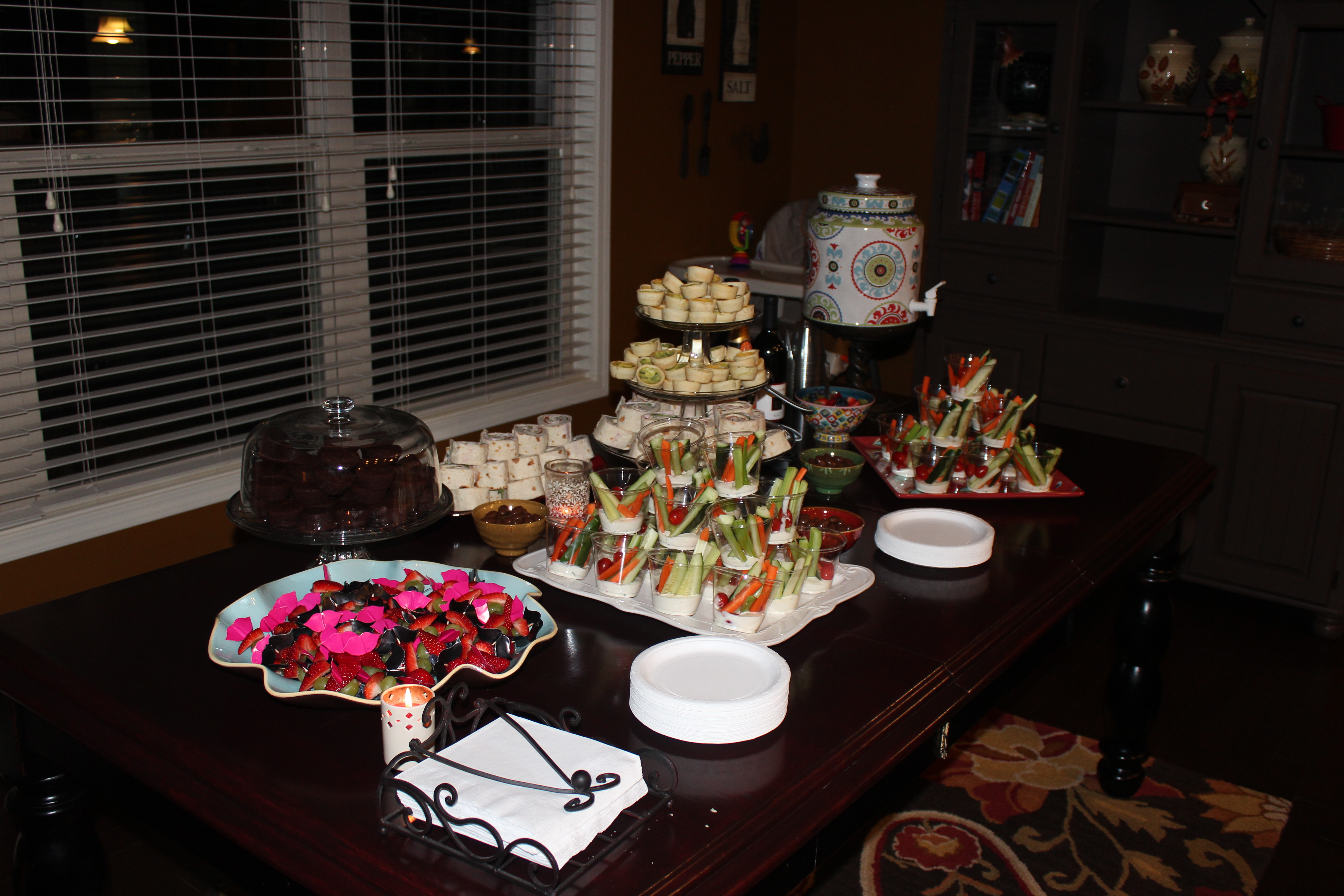 Anyway, after scouting bookstores my friend, Libby, and I decided that a private invite-only event would better fit our needs. Then we wouldn’t have to worry about people arriving on time and we could serve alcohol…which I definitely needed! Plus, it’s a lot easier to entice people with free drinks (wink wink). Libby has a gorgeous…I mean GORGEOUS house, and when she suggested having it there I said, YES! My friends did an amazing job at putting things together. Just look at this spread!