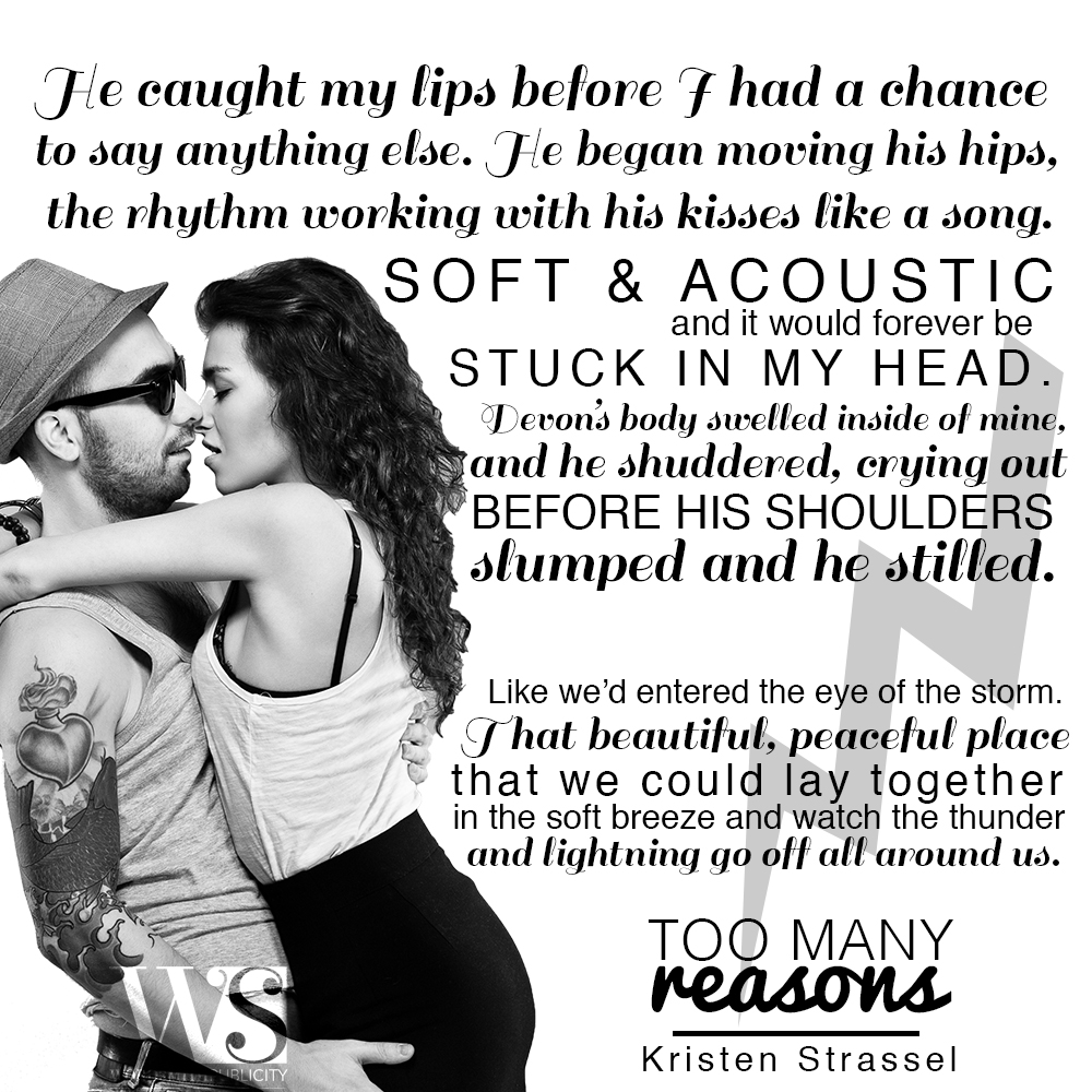 TOO MANY REASONS (A Spotlight Series Novel) by Kristen Strassel is here! Check out the excerpt and giveaway below! Kristen Strassel keeps her rock ‘n roll edge in this sexy contemporary NA. I’ve read this one and I love it.